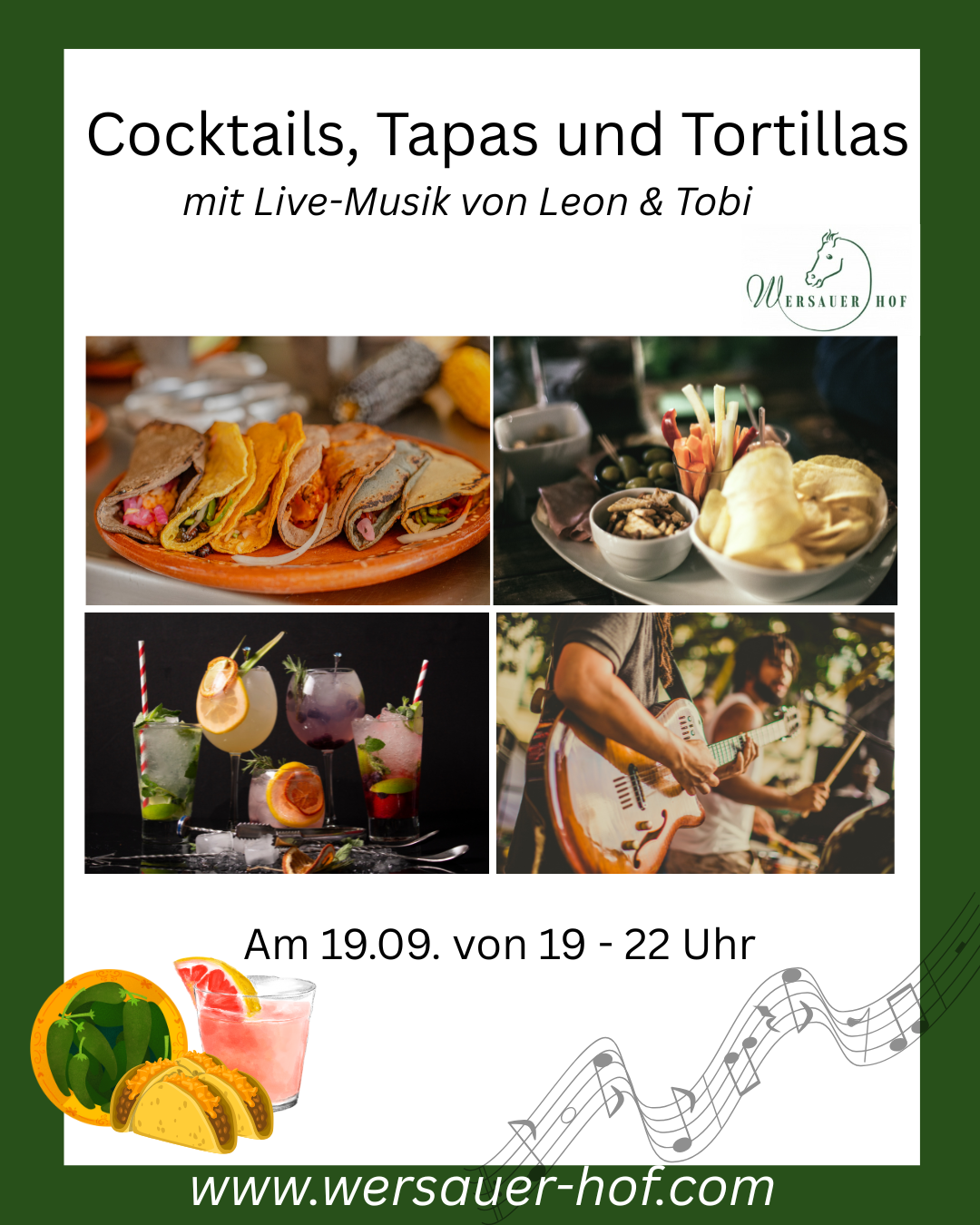Cocktails, Tapas & Tortillas – ein Abend wie in Uruguay Erlebt einen besonderen Abend voller Geschmack, Musik und Lebensfreude! Wir servieren euch Cocktails, Tapas und Tortillas – zubereitet nach Originalrezepten aus Uruguay.